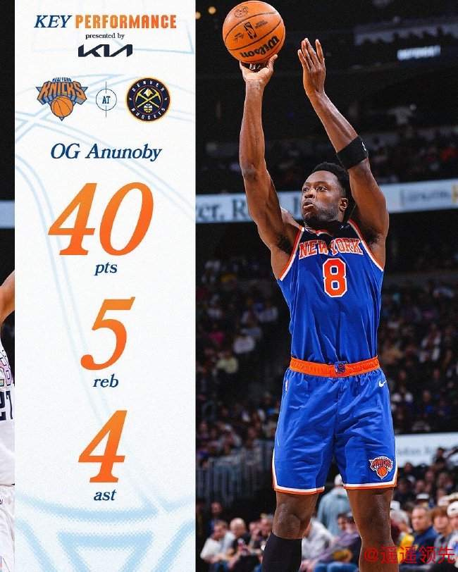 尼克斯(10-7):阿努诺比40分5篮板4助攻、唐斯30分15篮板4助攻3抢断、布伦森23分3篮板17助攻、布里奇斯14分6助攻、哈特12分6篮板5助攻、麦克布莱德13分6篮板3助攻、佩恩11分5助攻